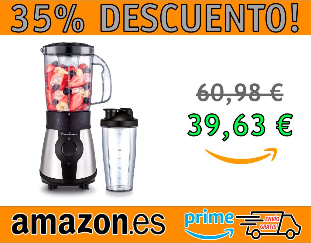 ¡PROMOCIÓN 35% DE DESCUENTO! BATIDORA DE VASO MOULINEX BLEND&GO DE 300 W, BATIDORA SMOOTHIE CON JARRA DE PLÁSTICO DE 750 ML, INCLUYE BOTELLA PORTÁTIL DE 750 ML, 4 CUCHILLAS EXTRAÍBLES, ACABADOS EN ACERO INOXIDABLE. PRECIO: 39,63€ COMPRA AQUÍ Acerca de este producto Batidora de vaso con potencia de 300 W para realizar batidos rápidos […]