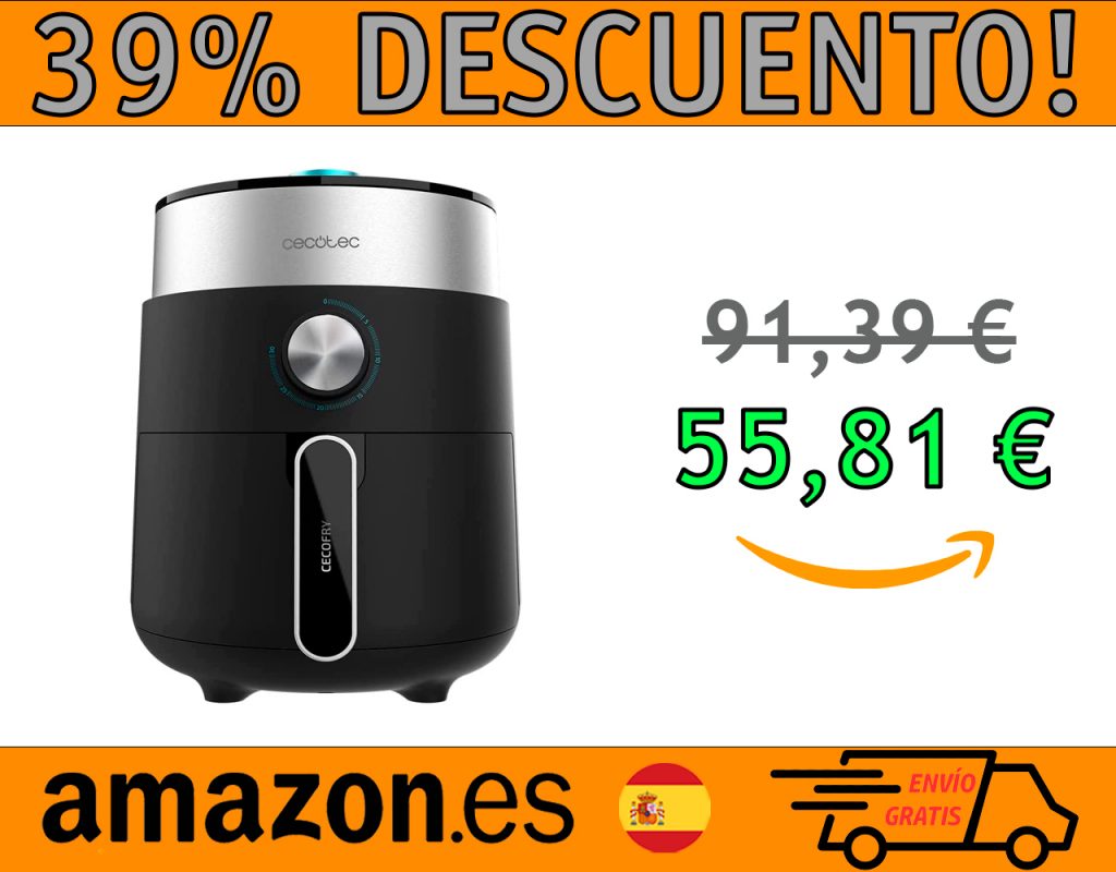 ¡PROMOCIÓN 39% DE DESCUENTO! 🟢 FREIDORA SIN ACEITE CECOTEC ESSENTIAL RAPID DARK 2.5 L, DE 1200W, DIETÉTICA, CONTROL MANUAL, TECNOLOGÍA PERFECTCOOK, TIEMPO Y TEMPERATURA REGULABLE, BASE.  PRECIO: 55,81€    COMPRA AQUÍ Acerca de este producto Freidora dietética que permite cocinar con una sola cucharada de aceite, consiguiendo unos resultados más sanos. Cubeta de 2,5 L de