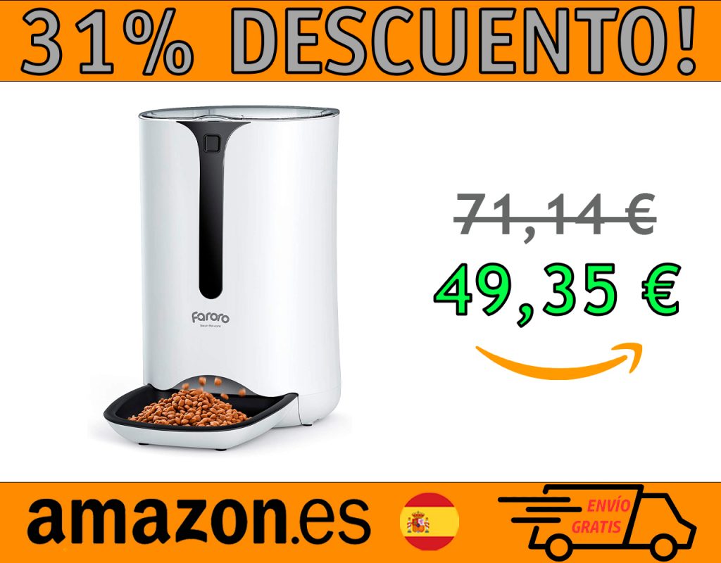 ¡PROMOCIÓN 31% DE DESCUENTO! 🟢 COMEDERO AUTOMÁTICO PARA GATOS FARORO 7L, DISPENSADOR DE COMIDA SECA PARA GATOS Y PERROS CON TEMPORIZADOR HASTA 4 COMIDAS POR DÍA, CONTROL DE PORCIONES, PANTALLA LCD, GRABACIÓN DE VOZ DE 10S.  PRECIO: 49,35€   COMPRA AQUÍ Acerca de este producto TIEMPO Y TAMAÑO DE COMIDA FLEXIBLE: la programación es muy simple,