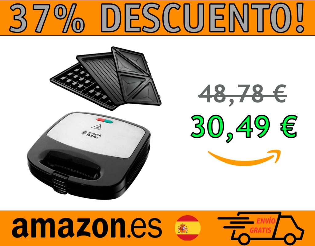 ¡PROMOCIÓN 37% DE DESCUENTO! 🟢 SANDWICHERA FIESTA 3 EN 1 RUSSELL HOBBS, 3 PLACAS EXTRAÍBLES: SÁNDWICHES, GOFRES Y GRILL, REVESTIMIENTO ANTIADHERENTE, FÁCIL LIMPIEZA, INDICADOR LUMINOSO, 750 W, NEGRO Y PLATA. PRECIO: 30,49€   COMPRA AQUÍ Acerca de este producto 3 Placas Intercambiables – La sandwichera Fiesta 3 en 1 incluye 3 placas extraíbles: placa para sándwiches, placa
